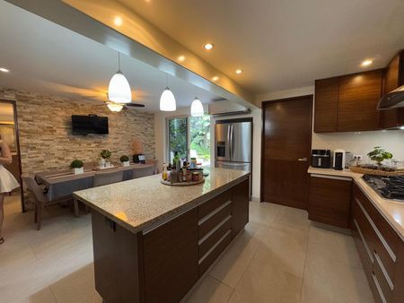 Cochera para 2 carros,Terrazas con asador todo nuevo, sala comedor, cocina todo remodelado, cuarto de tele con baño, cuarto de servicio, lavandería